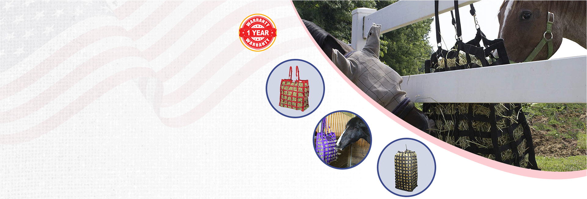 The Original Inventors of the Super Tough Bottom® Hay Bags and Corner Feeders for Stables, Trailers & Horse Shows