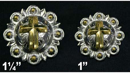 Shiny Silver and Gold Cross Conchos with Screw Back