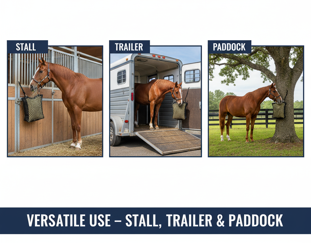 - Comfortable, Knotless Design – Made without knots to eliminate pressure points and rubbing. Soft on sensitive horse muzzles for safer daily feeding.