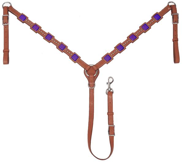 - MULTIPLE COLORS AVAILABLE - this breast collar is available in four leather accent colors: Pink, Lime Green, Turquoise, and Purple.